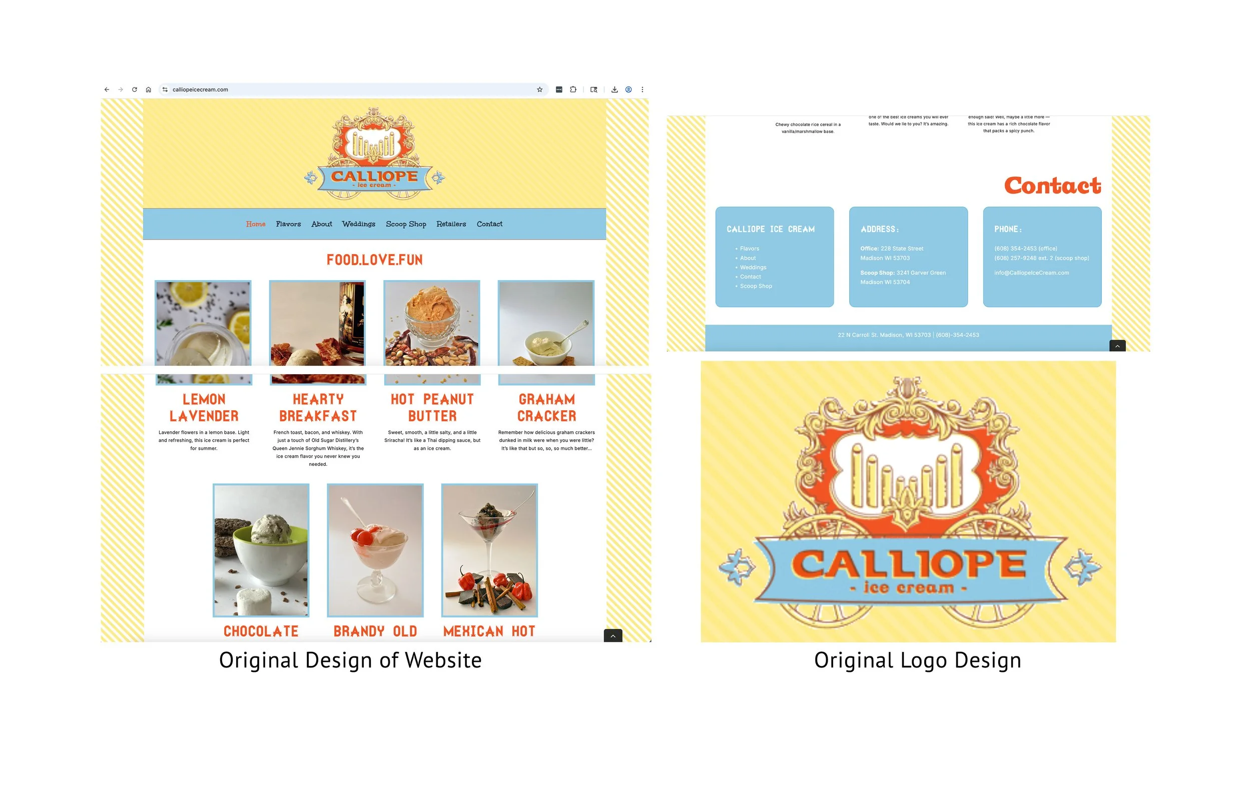 This project is to redesign a small brand company and for this I choose to do Calliope Ice Cream shop in Madison, Wi. The focus for this project was to redesign everything into a radiant theme and change the logo, website, and add a few fun merchandise for them.